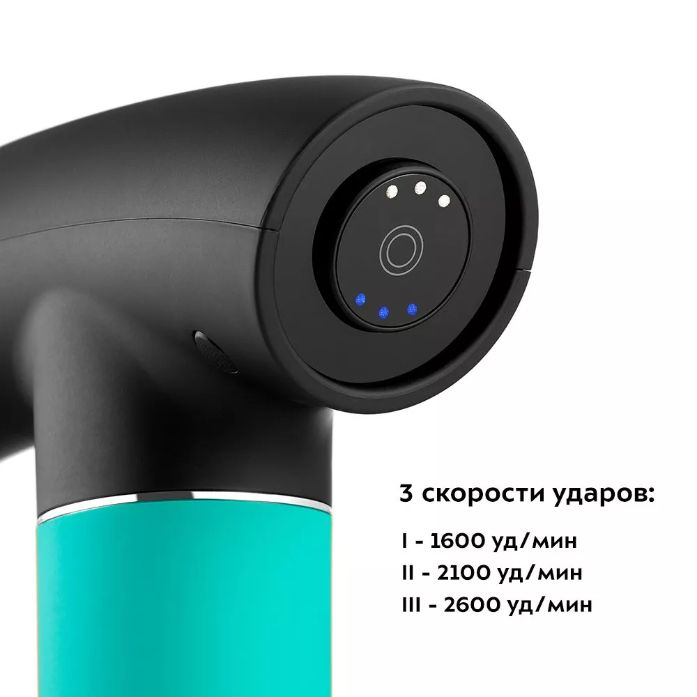 Силу массажного воздействия можно регулировать с помощью кнопки на боковой части устройства. 3 скорости позволяют подобрать комфортный, действенный массаж для различных участков тела, как для нетренированного человека, так и для спортсмена.