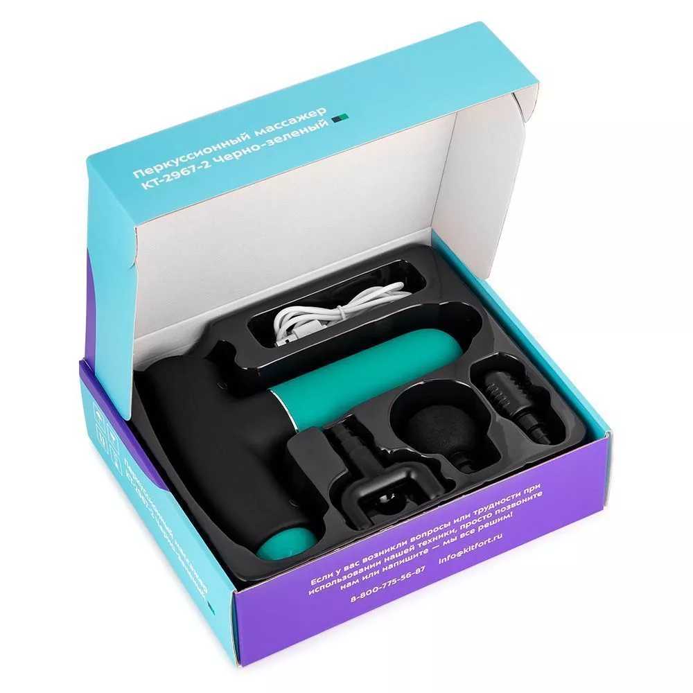 Модель КТ-2967 работает от аккумулятора, поэтому массажёр можно брать с собой и использовать в любом удобном месте: в спортзале, в офисе, в поездках, в походах или дома. Время зарядки аккумулятора составляет 3 часа.