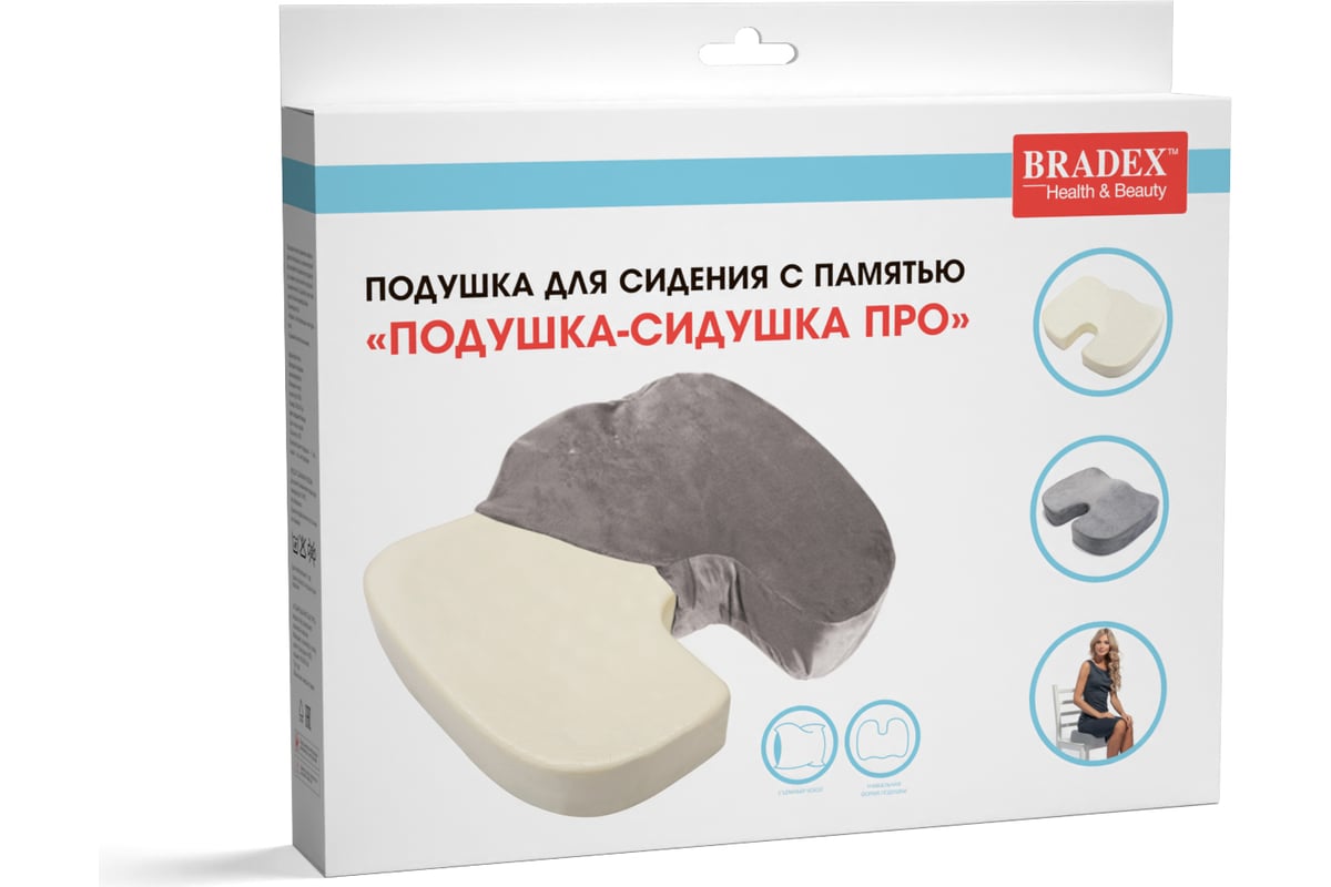 Подушка для сидения с памятью BRADEX ПОДУШКА-СИДУШКА ПРО KZ 0276 влияет не только на правильную осанку и работу позвоночника, но и оказывает благотворное влияние на снятие дискомфорта в тазовой области. Может использоваться как профилактическое и комплексное средство для лечения геморроя.