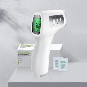 Измерение происходит за одну секунду благодаря использованию инфракрасного датчика. Термометр издает звуковой сигнал и показывает результат на цифровом LED-дисплее. Расстояние измерения температуры 1-5 см, измерять можно в единицах измерения по Цельсию и по Фаренгейту. Имеет функцию предупреждающего сигнала о повышении, есть автоматическое выключение.