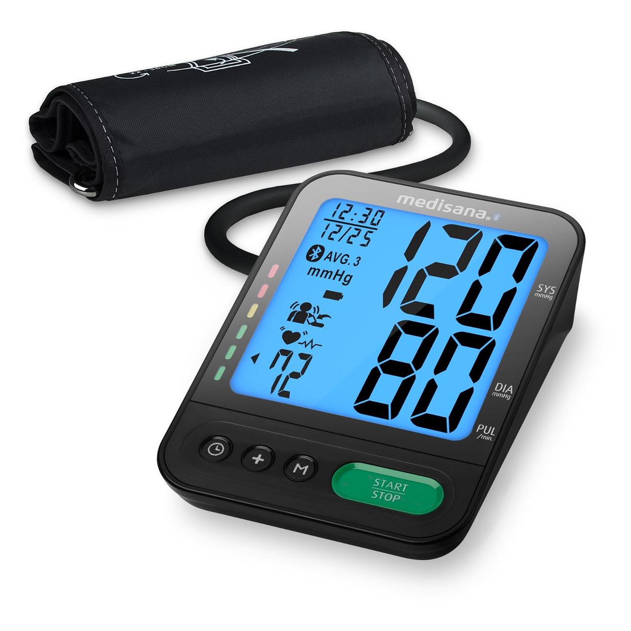 Тонометр Medisana BU 580 Connect черного цвета работает от четырех батареек АА. Чехол для хранения идет в комплекте. Жидкокристаллический дисплей оснащен голубой подсветкой. Диапазон измерений для пульса составляет от 40 до 199 ударов в минуту, для давления — до 280 мм рт. ст. Габариты модели — 12,8х12,8х11,6 см. Вес изделия — 630 г. Присутствует индикация аритмии, детектор движения для точных измерений, встроенный Bluetooth 4.2. Устройство совместимо с Android/ iOS. На дисплей выводятся показатели пульса и давления, время, дата. Последние измерения сохраняются в памяти.
