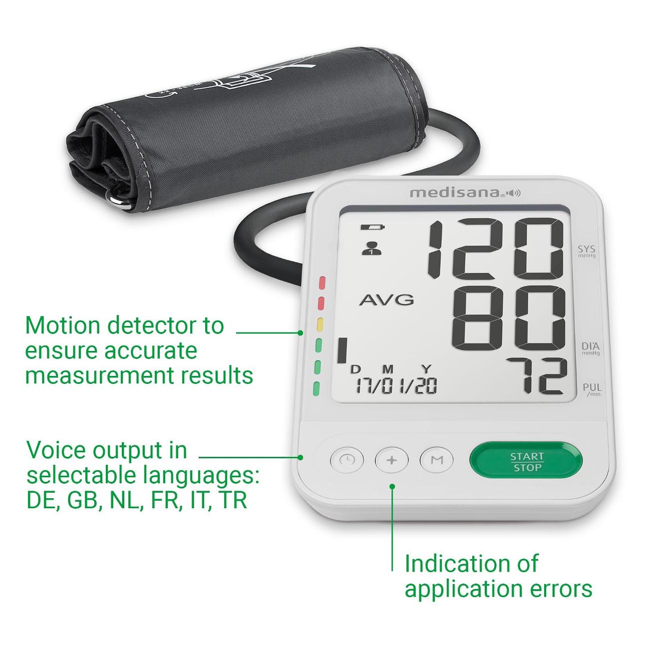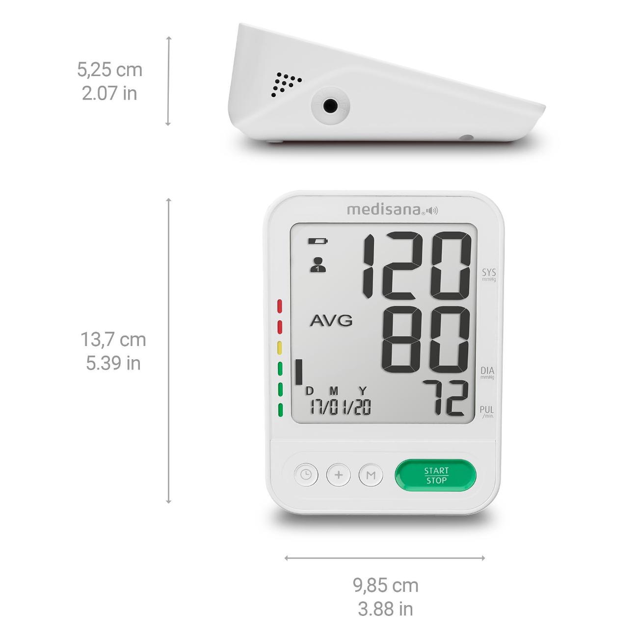 Тонометр Medisana BU 586 White оснащен детектором движения для точных результатов. Корпус сделан из прочного пластика, манжета — из полиэстера. Полуавтоматический тонометр идет в комплекте с чехлом для хранения. Размер манжеты - 22-42 см. Габариты модели — 11,5х11,5х16,8 см. Вес изделия — 570 г. Индикатор показывает пульс, давление и разряд батареи. Воздух в манжету подается автоматически. Погрешность давления составляет 3 мм рт. ст., пульса — 5%. Присутствует индикация аритмии, монитор сердечного ритма. Об окончании измерений сообщает звуковой сигнал.