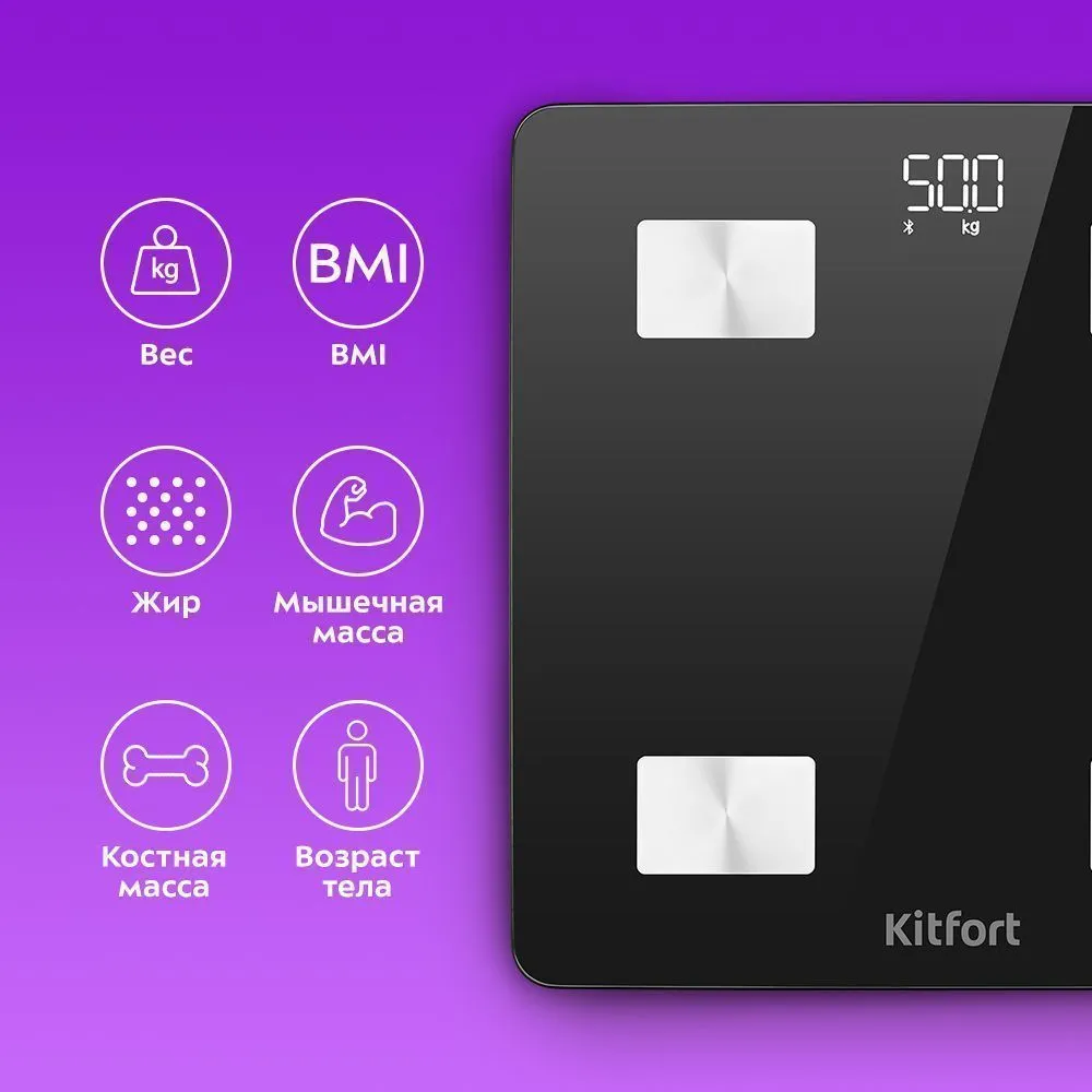 Весы КТ-836 представляют современное поколение «умных» весов, поскольку выводят на дисплей параметры биоимпедансного анализа. Электронные напольные весы обеспечивают высокую точность измерения, что очень важно людям, следящим за своим весом.