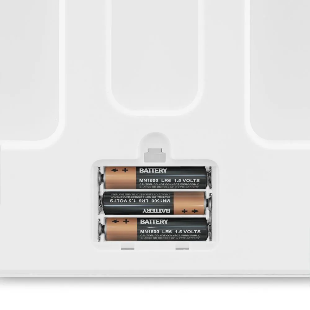 На обратной стороне устройства находится разъём для батареек. Низкое энергопотребление обеспечивает бесперебойную работу устройства от одного комплекта из 3 батареек AAA. Включение и выключение весов происходит автоматически