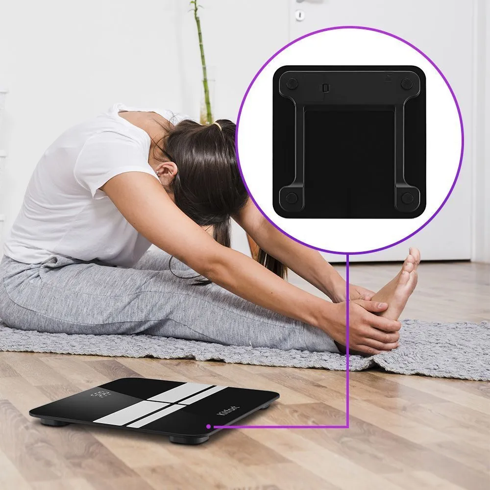 На платформе встроены металлические пластины, встав на которые, проводится диагностика тела. Далее весы синхронизируются по Bluetooth с приложением «Bitafit», где будут отражены показатели вашего тела.
