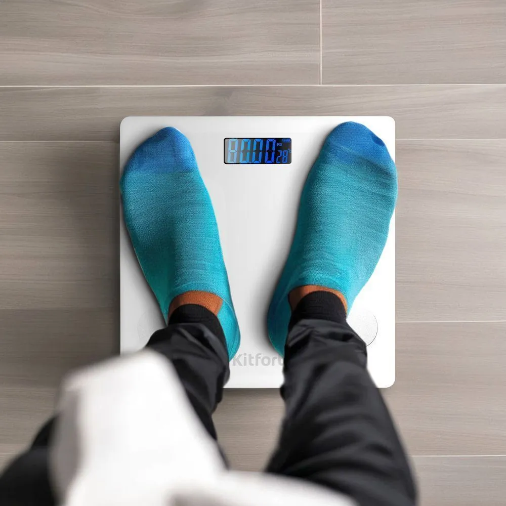 Прорезиненные ножки обеспечивают дополнительную устойчивость весов и предотвращают их скольжение по полу. Устройство работает от двух батареек типа ААА, которые входят в комплект.