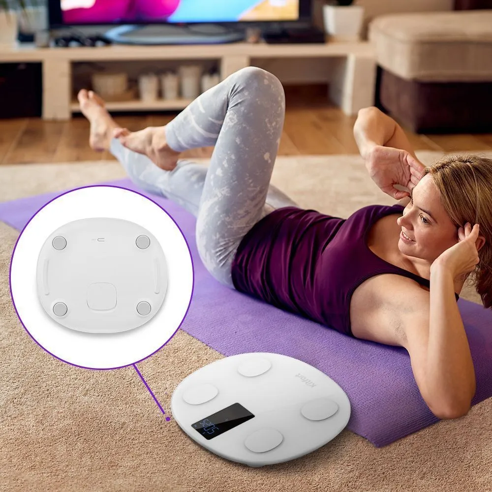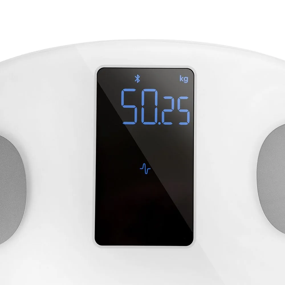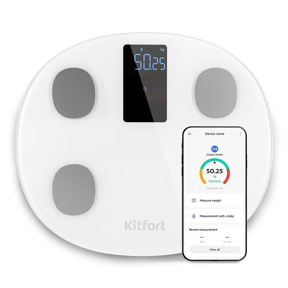 На платформе встроены металлические пластины, встав на которые, проводится диагностика тела. Далее весы синхронизируются по Bluetooth с приложением «Unique Health», где будут отражены показатели вашего тела.