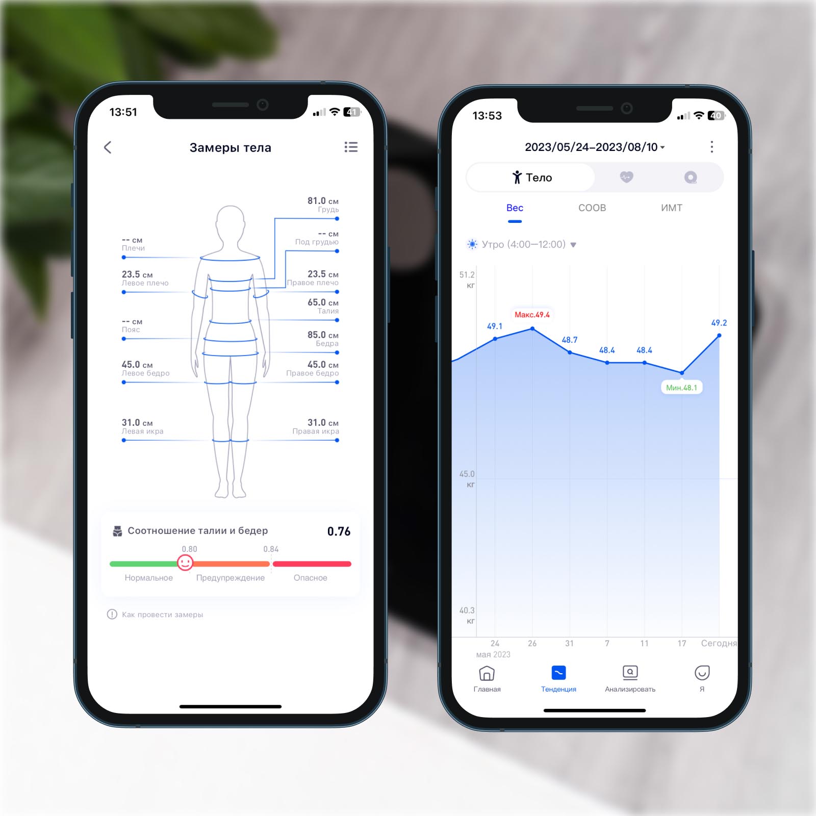 Поставьте в приложении цель — набор массы, похудение или поддержание формы — и получайте полезные советы для ее достижения. Каждое измерение сопровождается советом от Умного помощника: на что обратить внимание и как можно улучшить свою форму.