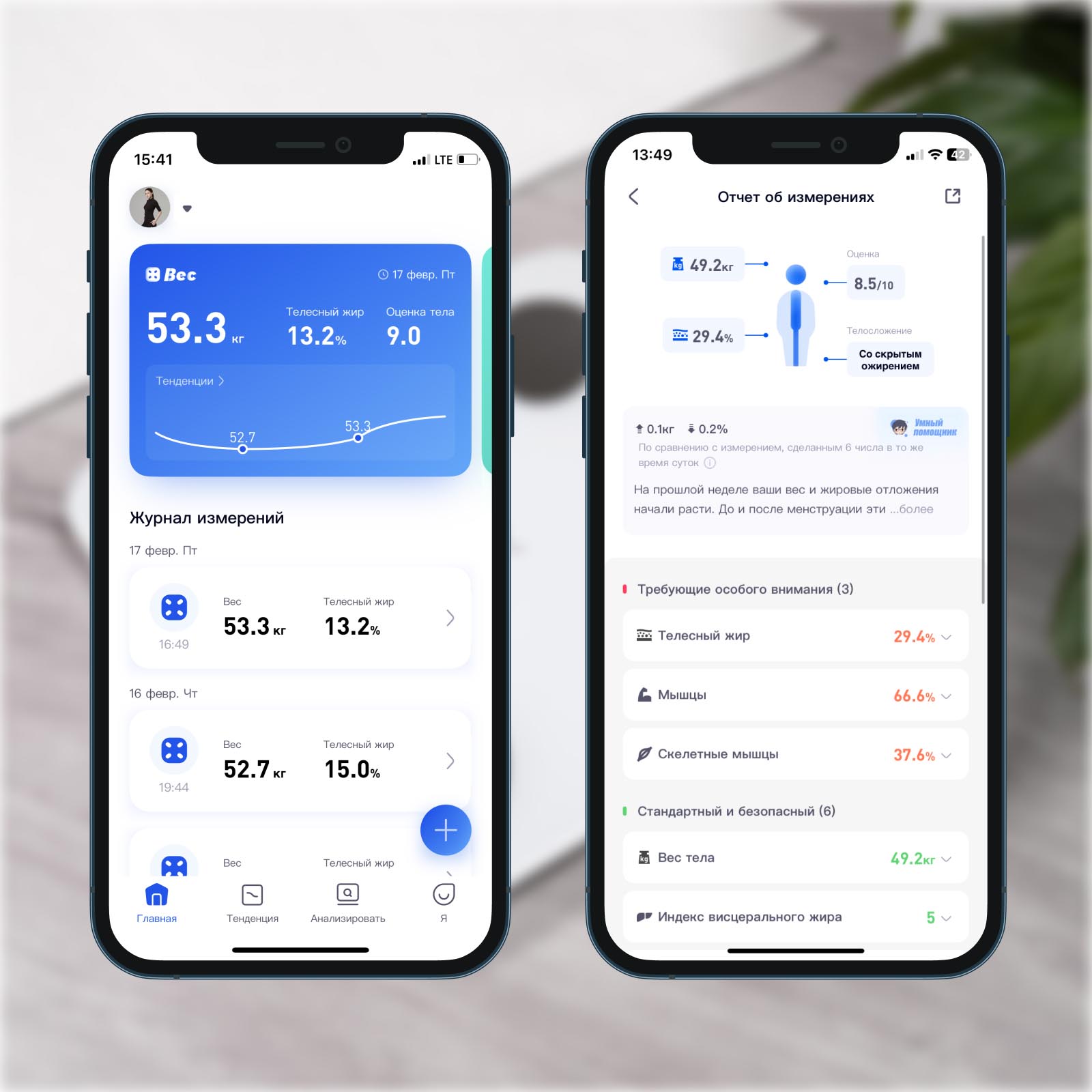 Поставьте в приложении цель — набор массы, похудение или поддержание формы — и получайте полезные советы для ее достижения. Каждое измерение сопровождается советом от Умного помощника: на что обратить внимание и как можно улучшить свою форму.