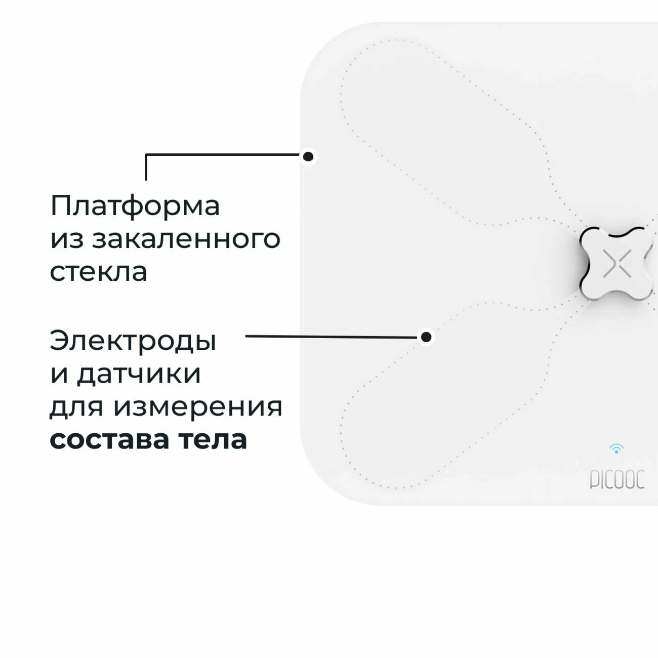 Ввод данных - пол/рост/возраст; Автоматическое включение; Ввод индивидуальных данных; Прорезиненные ножки; Подсветка платформы; Определение пользователя по весу; Индикация включения; График изменения веса; Совместимость с - android/ios; Цифровой дисплей; LED; Питание от батареек; Комплектация: Батарейка