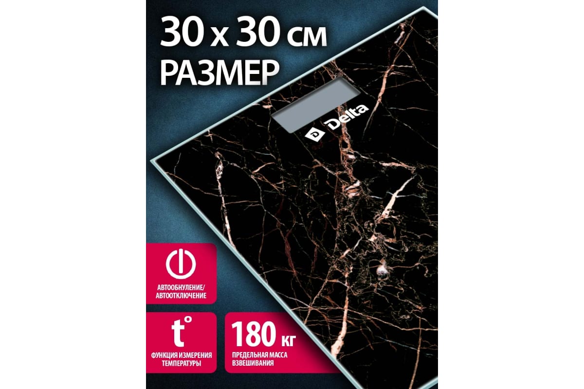 Весы напольные электронные DELTAD-9007 Black onix 180 кг Р1-00009200 используются для взвешивания человека, подойдут для бытового использования. Цифровой дисплей с автоматическим включением облегчает процесс эксплуатации весов.