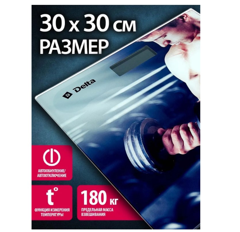 Весы 180 кг 30х30 см электронные напольные DELTA D-9230/1 "Спорт" позволяют контролировать массу тела и обеспечивают высокую точной измерения благодаря электронной системе.