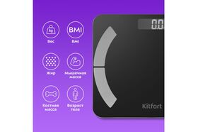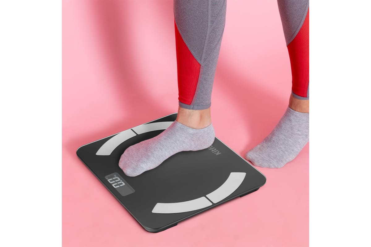 Электронные напольные весы обеспечивают высокую точность измерения и станут неизменным спутником для людей, следящих за своим весом. Весы КТ-814 представляют современное поколение «умных» весов, поскольку их можно подключить к приложению Fitdays, включив передачу данных через Bluetooth. Весы оснащены жидкокристаллическим дисплеем с крупными цифрами, что делает их использование максимально удобным. Платформа выполнена из высокопрочного полированного стекла, а прорезиненные ножки обеспечивают дополнительную устойчивость весам и предотвращают их скольжение по полу, что гарантирует безопасность во время взвешивания. Токопроводящие электроды вмонтированы в платформу, они необходимы для проведения биоимпедансного анализа. Биоимпедансный анализ — метод диагностики состава тела человека посредством измерения импеданса — электрического сопротивления участков тела в разных частях организма. Такой анализ считается точным и помогает провести оценку состава тела человека на соответствие принятым нормам. Включение весов происходит автоматически, если встать на них. После взвешивания показания весов фиксируются на дисплее. Мобильное приложение Fitdays выводит на экран телефона разные параметры проведенного анализа: вес, индекс массы тела, мышечную массу, костную массу, баланс тела, висцеральный жир, и т.д. Весы работают от двух батареек типа ААА. Весы имеют стильный и привлекательный дизайн, благодаря чему впишутся в любой интерьер.