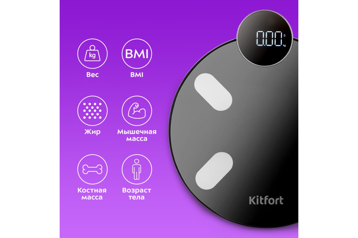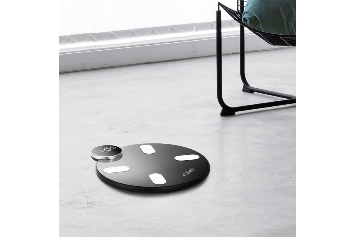 Электронные напольные весы обеспечивают высокую точность измерения и станут неизменным спутником для людей, следящих за своим весом. Весы представляют современное поколение «умных» весов, поскольку их можно подключить к приложению Fitdays, включив передачу данных через Bluetooth. Весы оснащены жидкокристаллическим дисплеем с крупными цифрами, что делает их использование максимально удобным. Платформа выполнена из высокопрочного полированного стекла, а прорезиненные ножки обеспечивают дополнительную устойчивость весам и предотвращают их скольжение по полу, что гарантирует безопасность во время взвешивания. Токопроводящие электроды вмонтированы в платформу, они необходимы для проведения биоимпедансного анализа. Биоимпедансный анализ — метод диагностики состава тела человека посредством измерения импеданса — электрического сопротивления участков тела в разных частях организма. Такой анализ считается точным и помогает провести оценку состава тела человека на соответствие принятым нормам. Включение весов происходит автоматически, если встать на них. После взвешивания показания весов фиксируются на дисплее. Мобильное приложение Fitdays выводит на экран телефона разные параметры проведенного анализа: вес, индекс массы тела, мышечную массу, костную массу, висцеральный жир и т.д. Весы работают от трех батареек типа ААА. Весы имеют стильный и привлекательный дизайн, благодаря чему впишутся в любой интерьер.