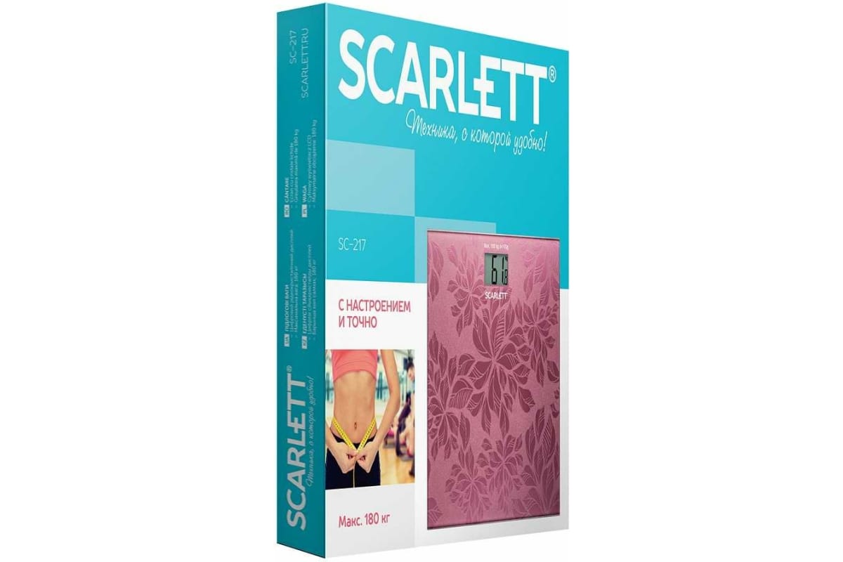 Напольные весы Scarlett SC-217 - это простой и удобный способ контролировать свой вес! Благодаря высокочувствительным датчикам погрешность составит не более одной цены деления: 100 г. Максимальный вес: 180 кг. Ультратонкий дизайн обеспечит компактное хранение. Материал платформы - высокопрочное закаленное стекло. Автоматическое включение и выключение позаботятся об экономом расходе заряда батареи. Индикатор перегрузки и индикатор батарейки обеспечат комфортную эксплуатацию. Большой жидкокристаллический дисплей 45x28 мм делает эксплуатацию весов комфортнее. Прорезиненные ножки придают дополнительной устойчивости и предотвращают скольжение. А приятное цветовое решение c металлическим эффектом позволят прибору не только вписаться в любой интерьер, но и радовать глаз каждый день!