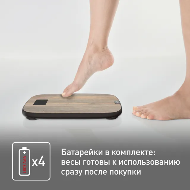 Устройство Tefal PP1600V0 позволяет выбрать 3 единицы измерения, оповещает о перегрузке и необходимости смены батарейки. Весы работают от 4-х батареек AAA, сами включаются под вашим весом и отключаются при бездействии. Подсветка на дисплее позволяет четко увидеть данные даже при плохом освещении.