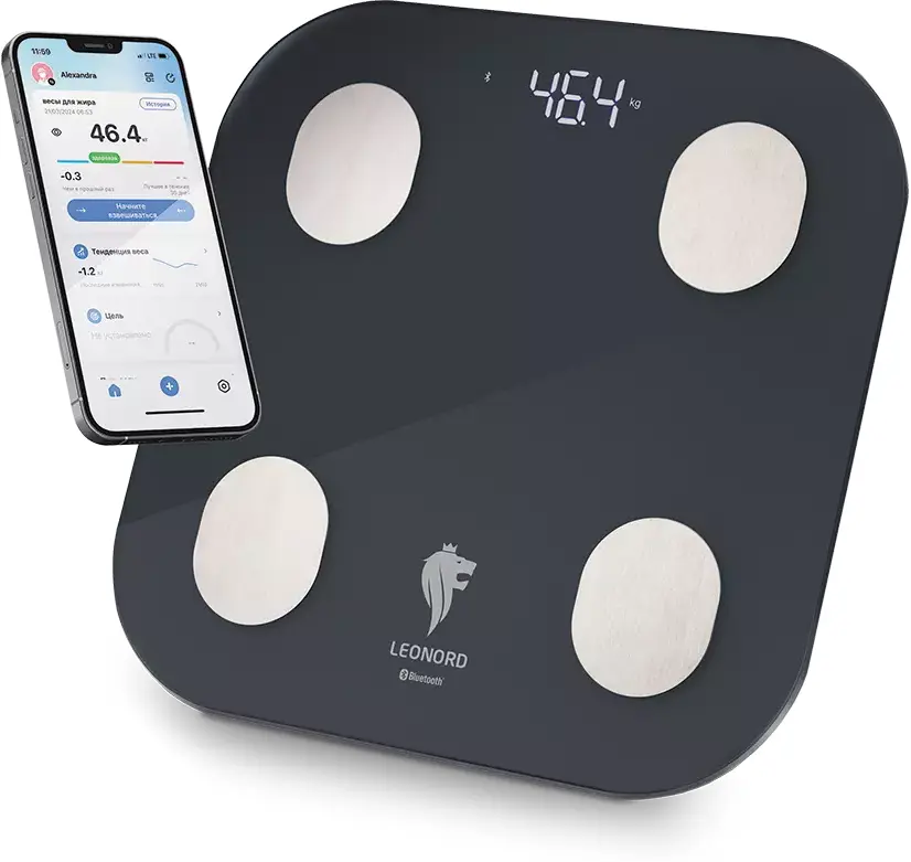Автоотключение, Бесплатное приложение на телефоне, Индикатор перегрузки, Крупный LED дисплей с подсветкой, Противоскользящие ножки, Функция Bluetooth