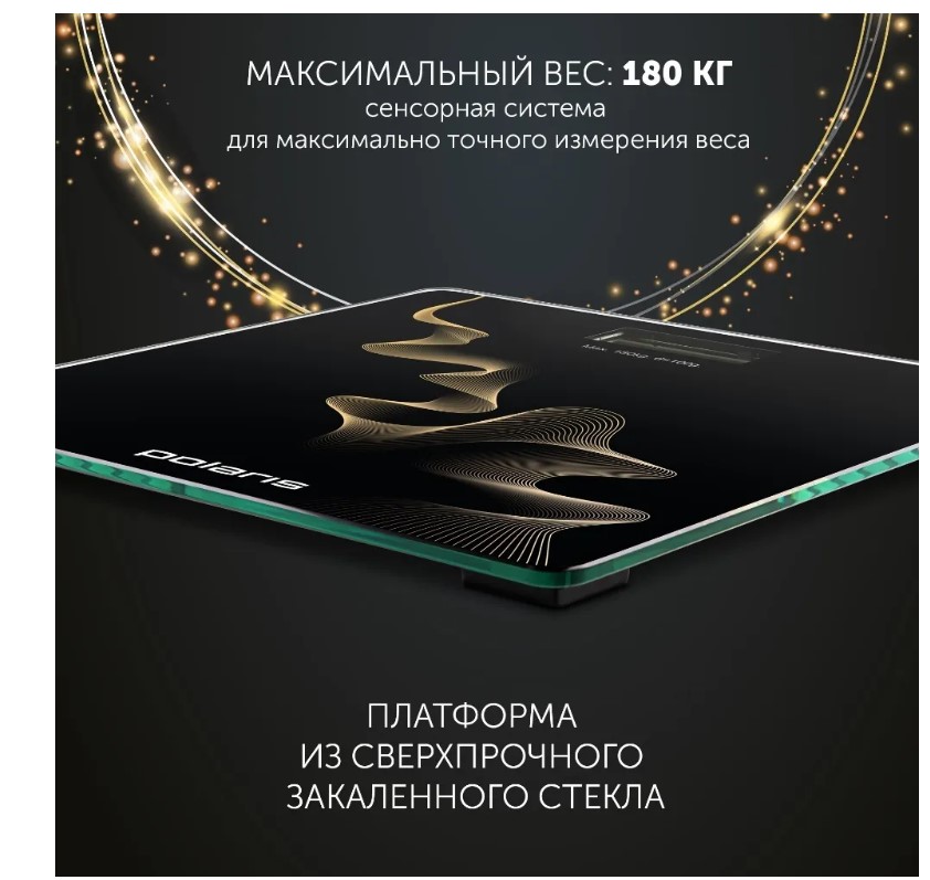 Весы напольные Polaris PWS 1882DG Trinity Collection с платформой из сверхпрочного закаленного стекла и сенсорной системой для максимально точного измерения веса. Максимальный вес: 180 кг. ЖК-дисплей. Автоматическое отключение. Индикация превышения максимального веса и работы батареек.