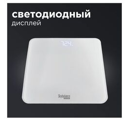 Платформа весов выполнена из прочного закаленного стекла. Благодаря ультратонкому корпусу всего в 7 мм их удобно хранить под кровать или мебелью. Также прибор оснащен ярким светодиодным дисплеем, на котором хорошо видны результаты взвешивания.