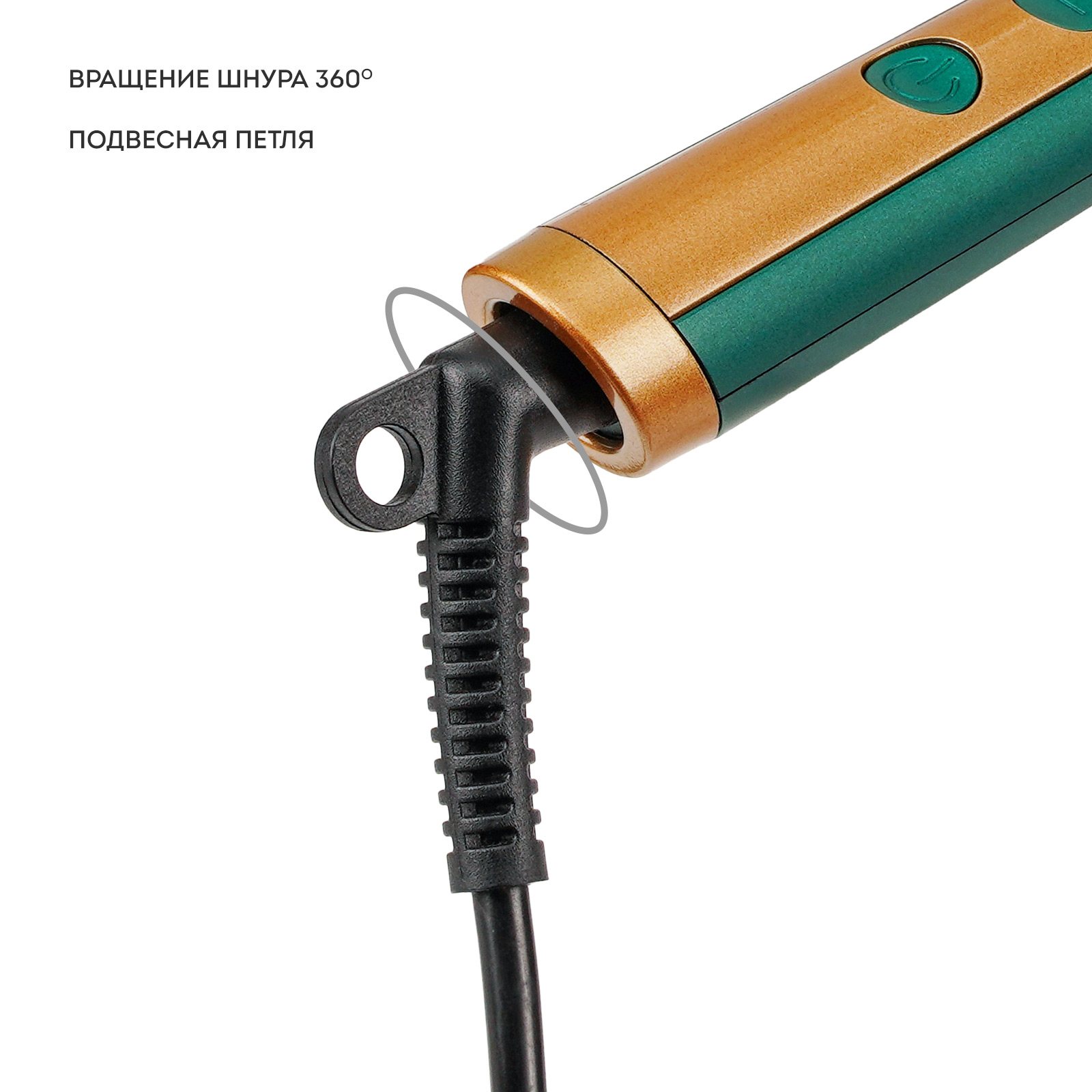 Керамическое покрытие рабочей поверхности хорошо распределяет температуру, не повреждает волосы и не перегревает их, прибор абсолютно безопасен.
