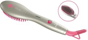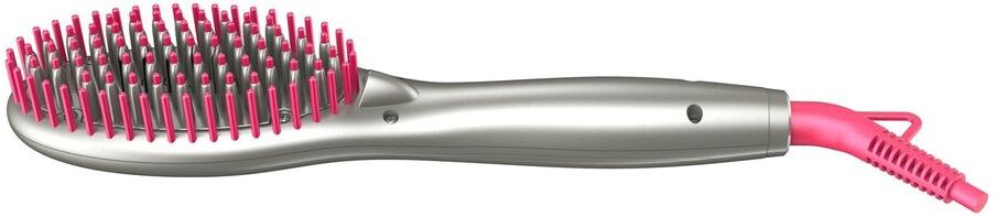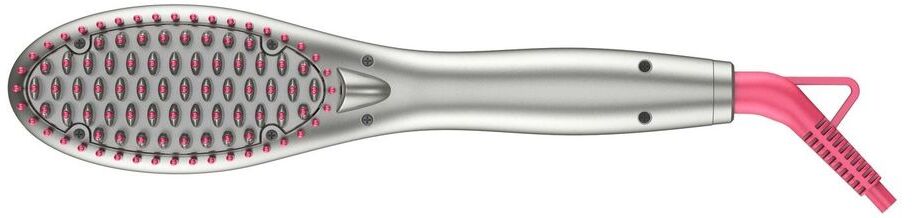 Керамические щетинки позволяют одновременно выпрямлять и расчесывать волосы, даже самые густые. На рабочей поверхности расположено 96 щетинок, 56 из которых являются термическими, а 40 – вспомогательными, предназначенными для распутывания прядей. Щетинки имеют силиконовые накладки, которые предупреждают негативное воздействие высоких температур на кожу головы. Постоянная температура нагрева 220 градусов. Керамическое покрытие обеспечивает равномерное распределение тепла, хорошее скольжение и бережное воздействие на волосы.Nano Silver - инновационная технология покрытия щетинок нано-частицами серебра. Это нужно для создания стойкого антибактериального эффекта, благодаря которому снижается скорость загрязнения волос и жирность кожи головы.