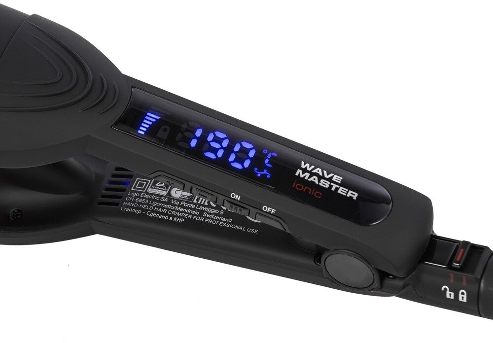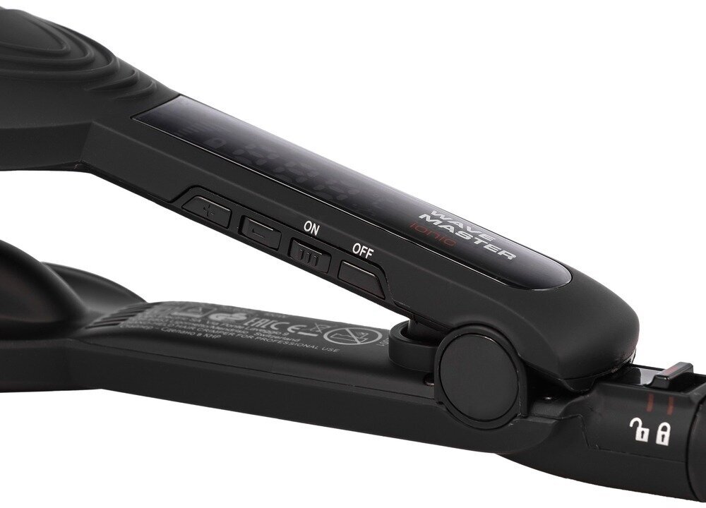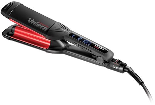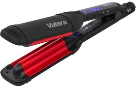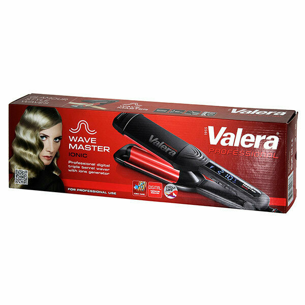 Управление стайлером выполняется с помощью кнопок и жидкокристаллического дисплея. На экране отображаются текущие параметры работы, в том числе — установленный температурный режим. Уровень накаливания пластин пользователь может регулировать в диапазоне 140–210 ˚С. После 60 мин непрерывной работы модель автоматически отключается, что значительно повышает ее безопасность. Шарнирное крепление сетевого шнура предотвращает скручивание и появление заломов, а также обеспечивает свободу действий в процессе использования электрощипцов Valera 647.03 Triple Barrel Wave.