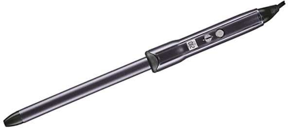На пластиковой ручке установлена кнопка переключения между двумя доступными температурными режимами. У основания сетевого провода размещена небольшая петля для подвешивания устройства. Вес — 0,7 кг. Время нагрева электрощипцов до 210°C не превышает 60 сек.