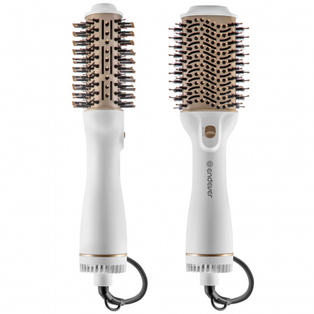 Керамическое покрытие, 3 скоростных и температурных режима, Режим подачи холодного воздуха (43°С), Температура подаваемого воздуха: Режим №1 - 56°С и Режим №2 - 85°С, Комбинированные щетинки без спутывания волос, Удобная петелька для подвешивания, Безопасный наконечник, Шарнирное вращение шнура на 360°