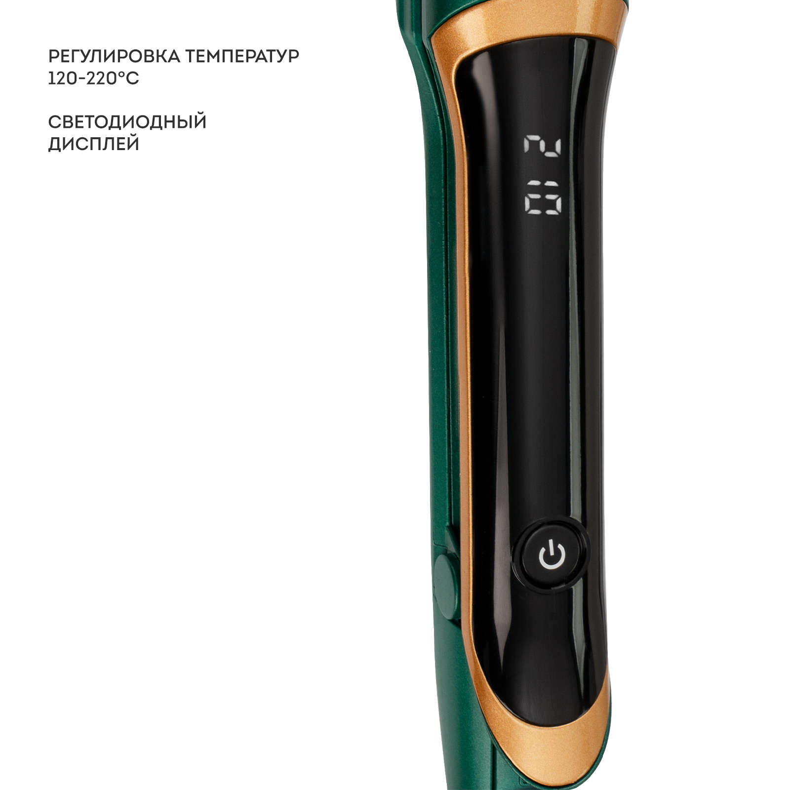Диапазон температур нагрева от 120°С до 220°С с шагом в 10°С отображается на дисплее и позволяет выбрать режим, который оптимально подходит именно для вашего типа волос.