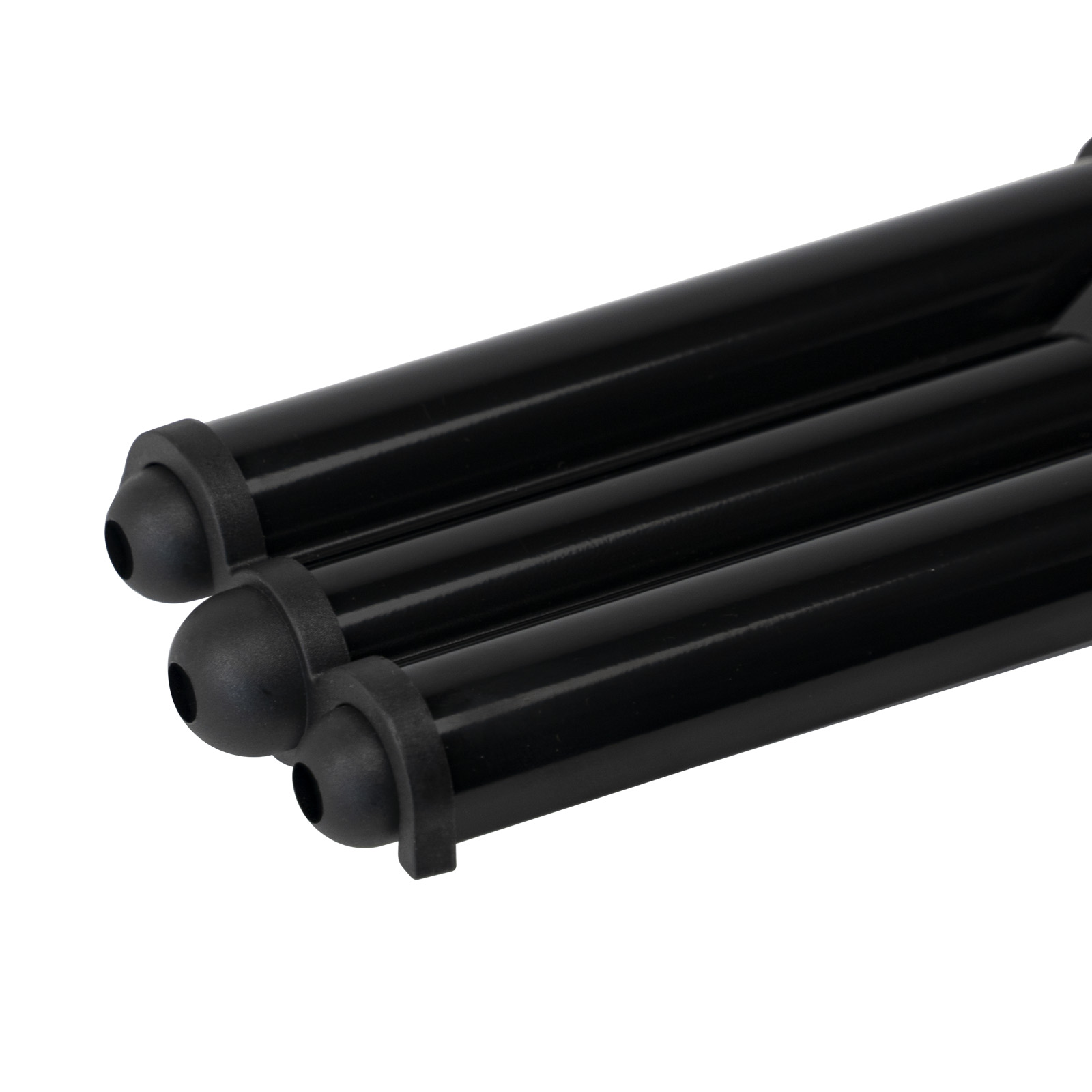 Тройная плойка позволяет захватить большую прядь и моментально придать ей эффектную волну.