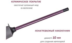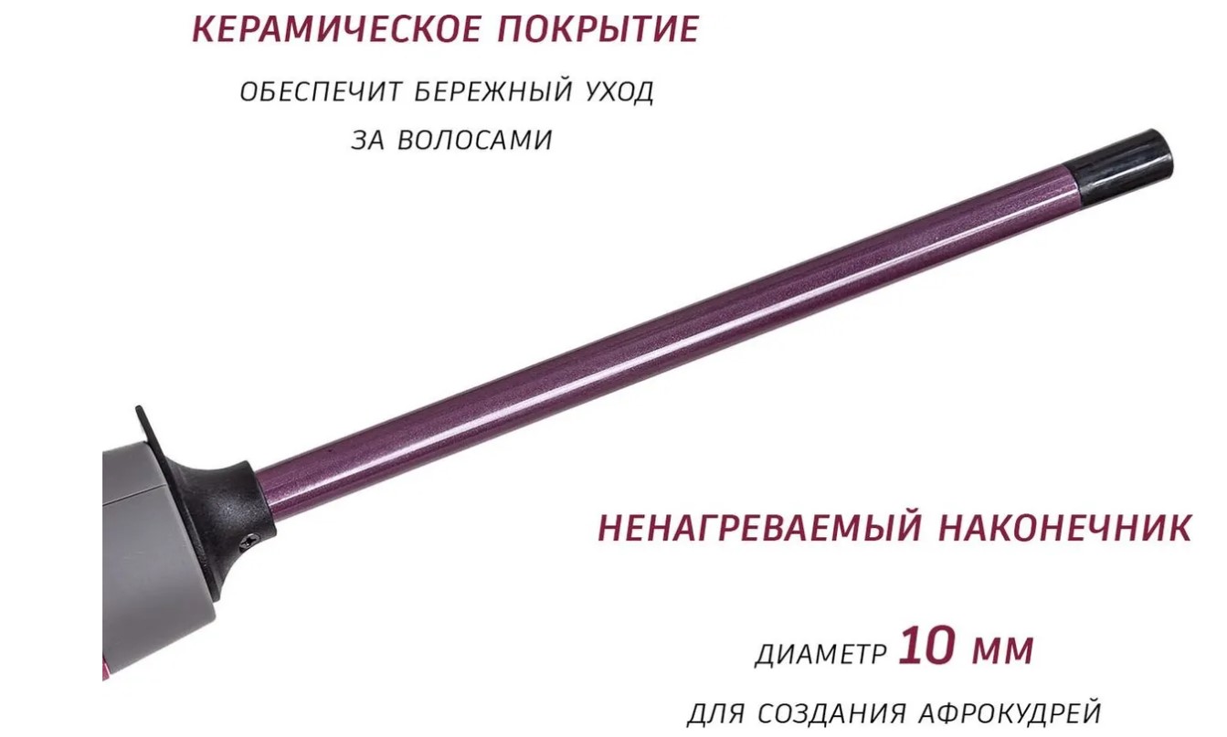 Керамическое покрытие позволяет равномерно прогревать локоны без вреда для волос. Отрицательные ионы, выделяющиеся при нагреве, запаивают чешуйки волос, тем самым помогая сберечь влагу, а значит избежать пересушивания и ломкости.