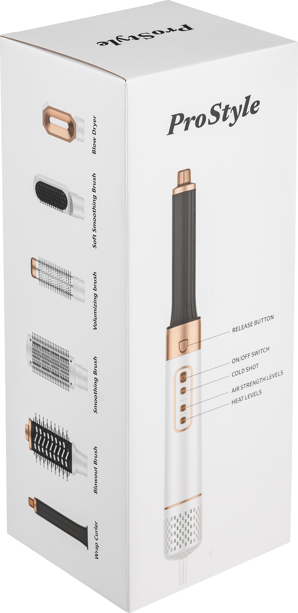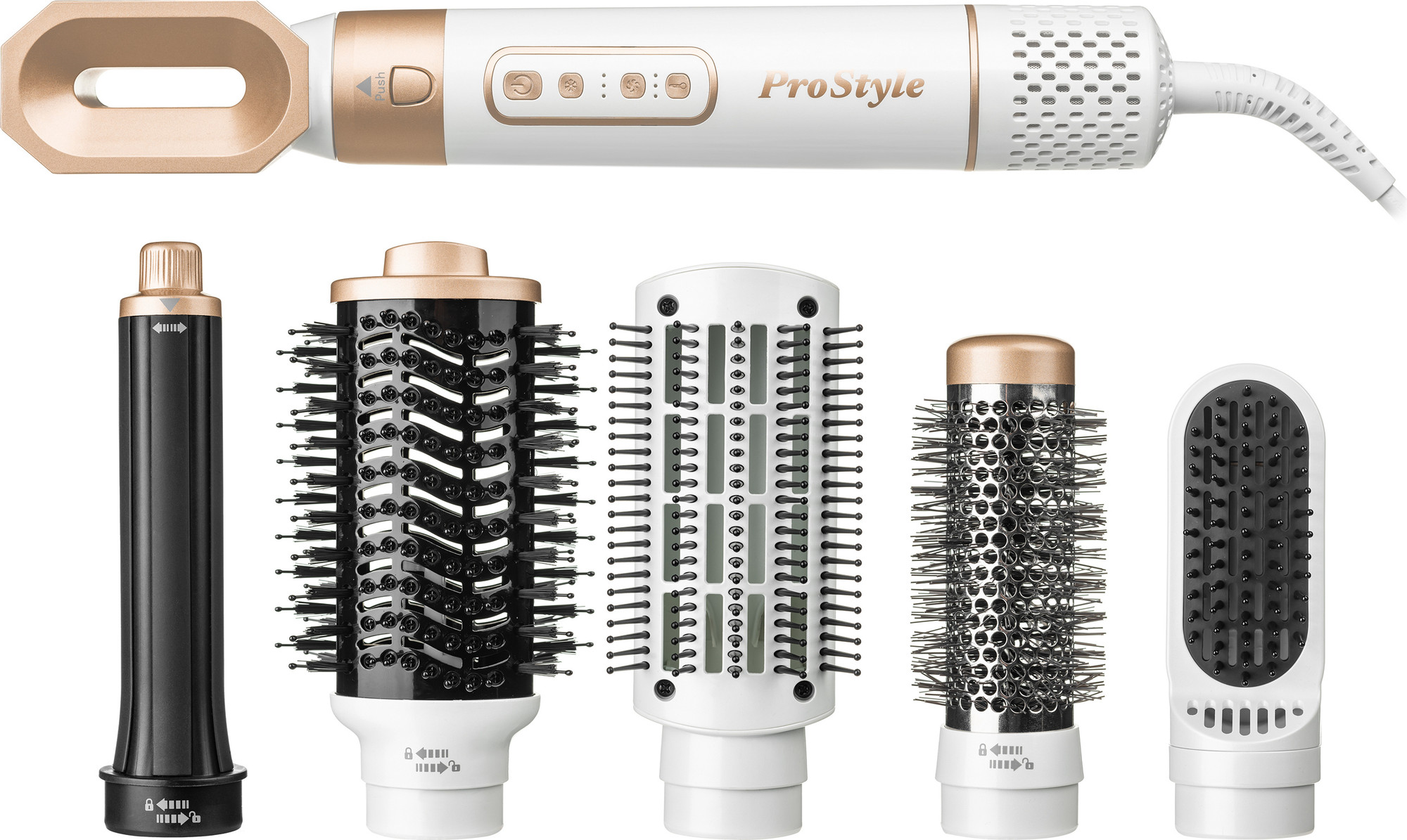 насадка для сушки волос, выпрямитель, насадка для локонов (диаметр — 3 см), насадка-щетка (диаметр — 3.8 см)