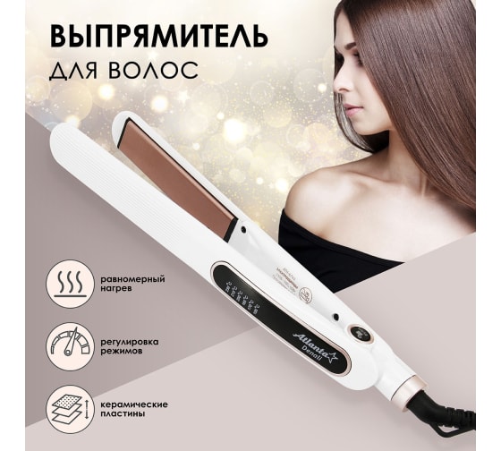 Электрощипцы для выпрямления волос Atlanta ATH-6741 white предназначены для парикмахерских и домашнего использования.