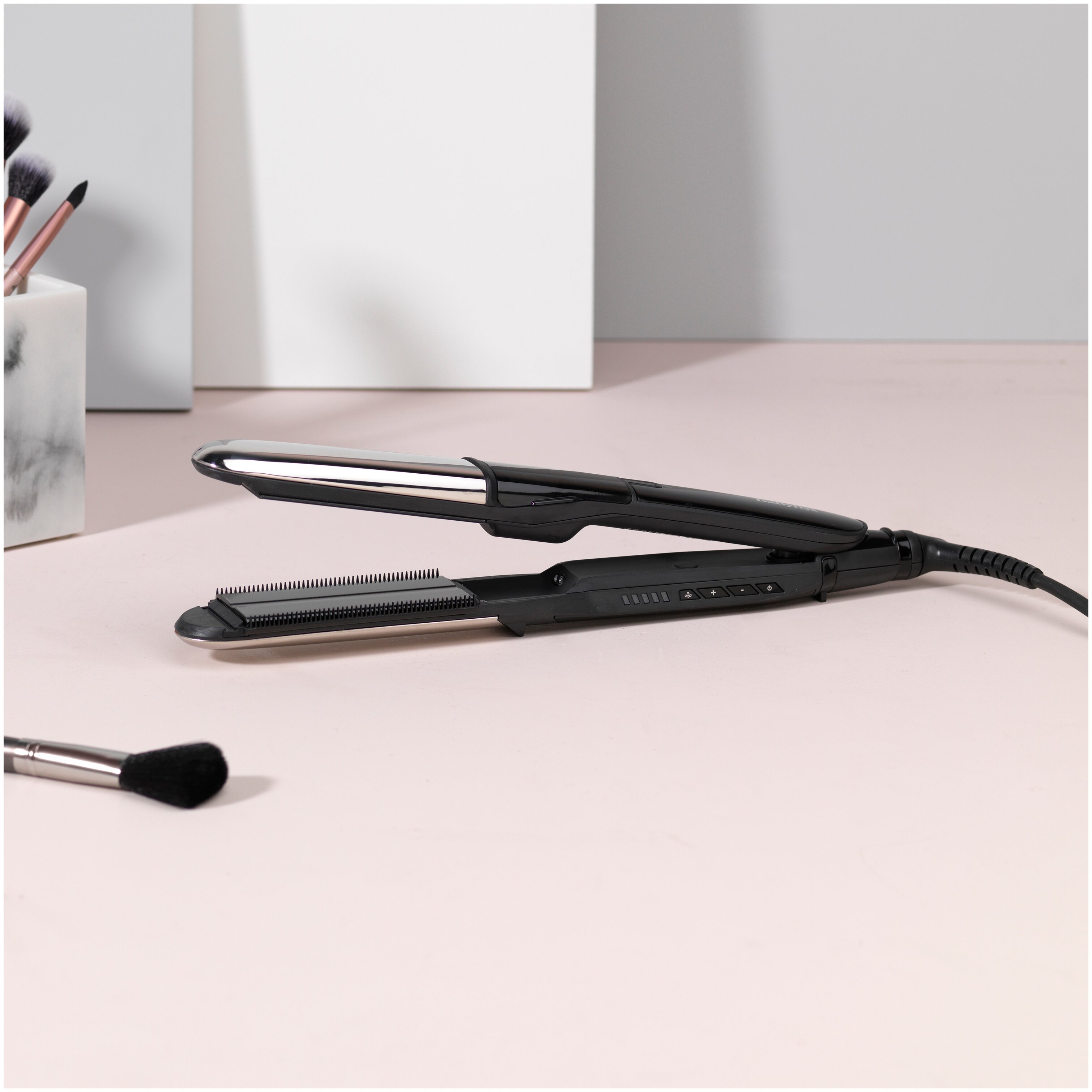 Функция пара. Мгновенно генерируемый микропар непрерывно увлажняет прядь от корней до кончиков