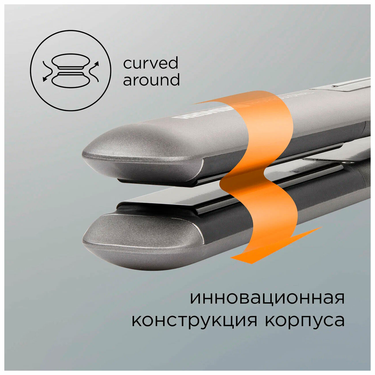 Пластины имеют гладкие скругленные кромки, чтобы пряди плавно скользили между ними, не цепляясь за края.