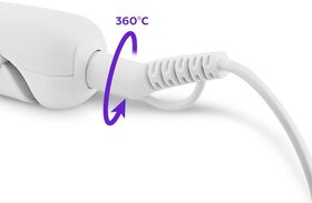 Шнур оснащён защитой от перегиба, что увеличивает срок службы прибора. На защите от перегиба находится петля для подвесного хранения. Вращение шнура на 360° обеспечивает удобство в использовании — провод не скручивается и не путается при повороте.