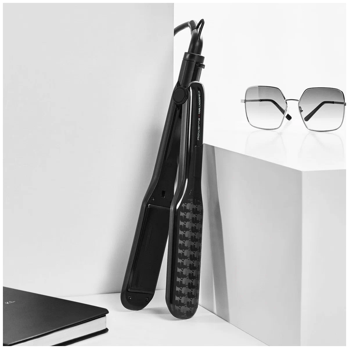 Эксклюзивное покрытие Keratin & Glow сочетает в себе кератин и турмалин, наделяя волосы здоровым сиянием. Ионизация снижает статическое электричество, делая волосы мягкими, блестящими и послушными. Максимальная температура 230°C для исключительно быстрой и эффективной укладки. Идеальный контроль нагрева: выбирайте любую из настроек температуры от 130°C до 230°C. Плавающие пластины автоматически подстраиваются под толщину пряди, обеспечивая результат всего за одно движение. Функция Straight & Curl для еще большего разнообразия ваших образов. Выпрямитель готов к работе всего через 60 секунд после включения. Система блокировки для удобного хранения. Выпрямитель Rowenta Карл Лагерфельд приближает стиль, сияние и гламур на расстояние вытянутой руки. Обеспечьте своим волосам идеальный уход, которого они заслуживают. Благодаря эксклюзивному покрытию Keratin & Glow выпрямитель от Rowenta легко скользит по прядям и придает укладке шелковистый блеск и здоровое сияние. Совершенство – состояние души. Откройте идеальное сочетание инновационных технологий и опыта профессиональных стилистов с линейкой приборов Rowenta серии Карл Лагерфельд. Каждый день ухаживайте за волосами и создавайте притягательные, неповторимые укладки, достойные лучших подиумов. Rowenta x KARL LAGERFELD: Икона стиля в вашем зеркале.