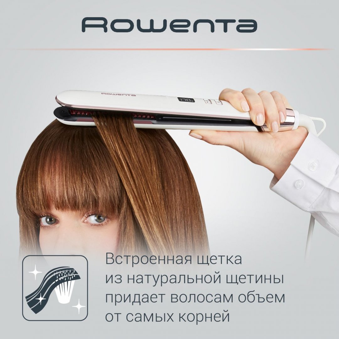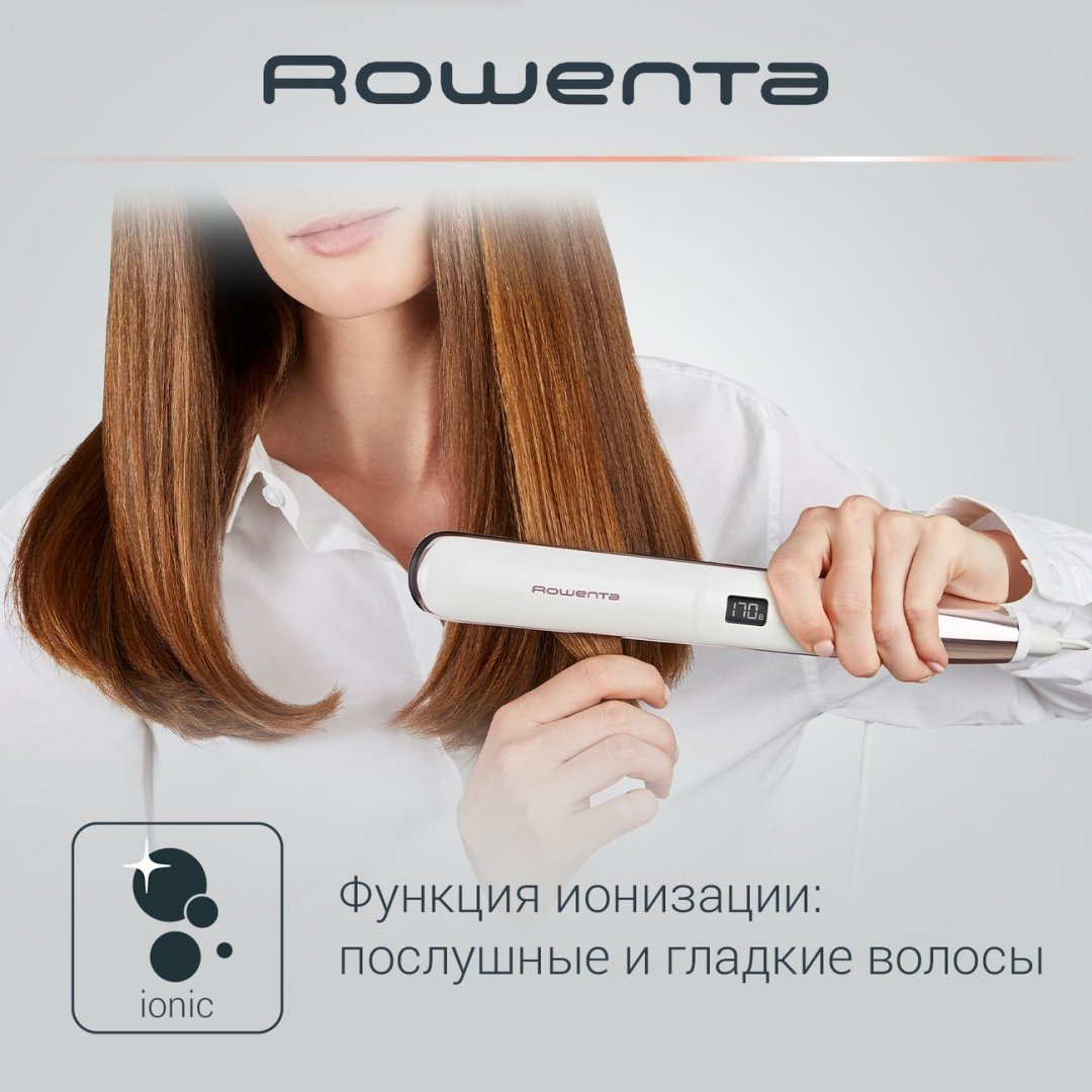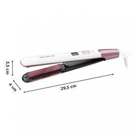 Выпрямитель Rowenta Volumizer SF4655F0 имеет управление механического типа. Пользователь самостоятельно выбирает температуру нагрева от +140°C до +210°С. Параметры работы автоматически отображаются на цифровом дисплее. Модель готова к использованию через 30 секунд после включения. Для удобства хранения на корпусе есть петля, с помощью которой выпрямитель можно повесить на крючок. При возникновении риска перегрева и поломки устройство отключается.