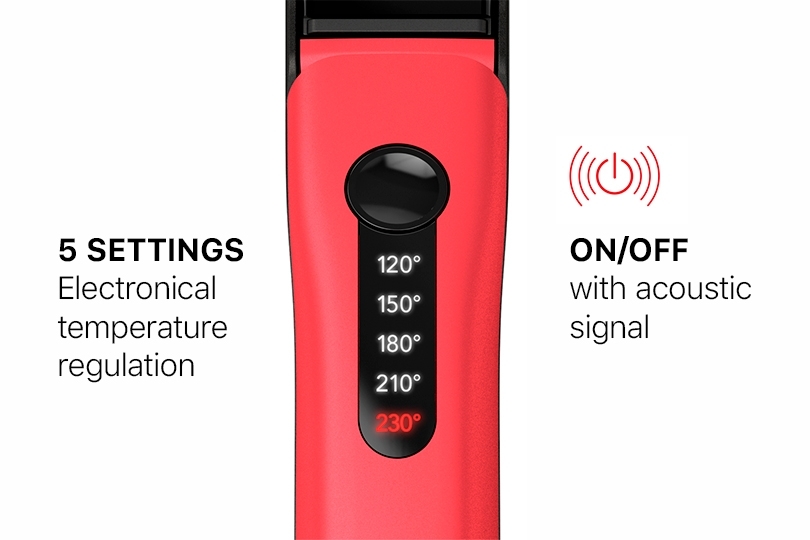 Электронное регулирование температуры с 5 настройками: 120°C, 150°C, 180°C, 210°C, 230°C