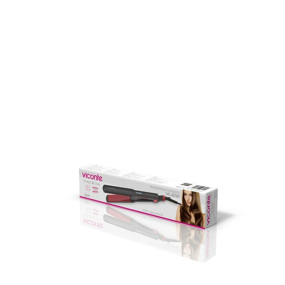 Выпрямитель для волос, мощность 70 Вт, плавающие пластины с турмалиновым покрытием, размер пластин 120х32,6 мм, максимальный температурный нагрев 230 градусов, 6 температурных режимов, LCD дисплей, функция автоотключения через 30 мин работы, время нагрева до оптимальной и стабильной температуры – 2-3 минуты, вращающийся шнур.