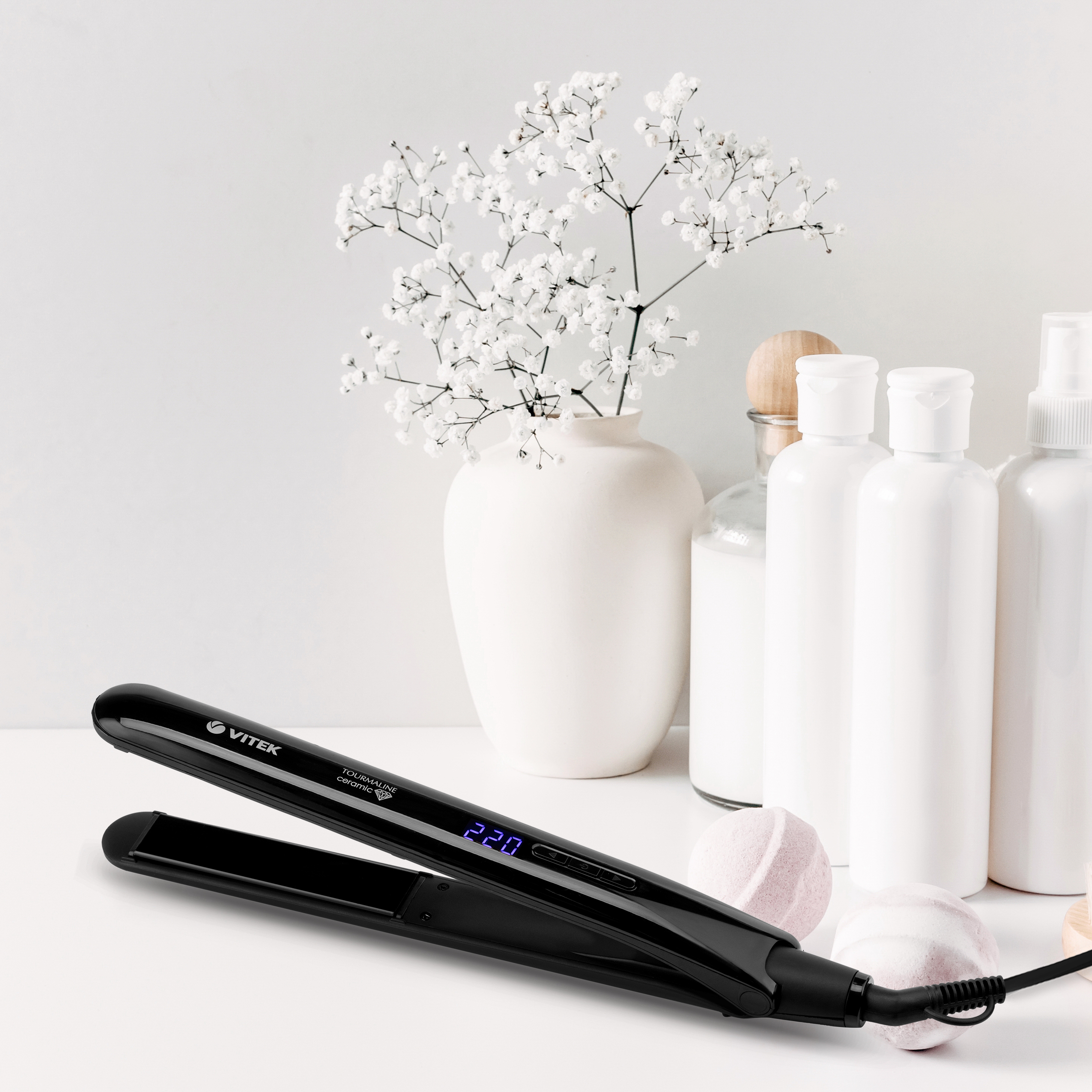 Идеально выпрямить волосы, сохраняя их красоту и здоровье, поможет выпрямитель VITEK VT-8286. Вы можете выбрать один из шести температурных режимов — от 120 °С до 220 °С. Температура отображается на удобном LED-дисплее, расположенном в верхней части прибора. Удлиненные пластины выпрямителя (110 мм) имеют инновационное покрытие Tourmaline Ceramic, способствующее запечатыванию чешуек волос, поэтому в результате они будут выглядеть блестящими и здоровыми.