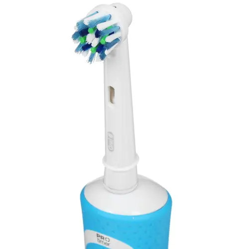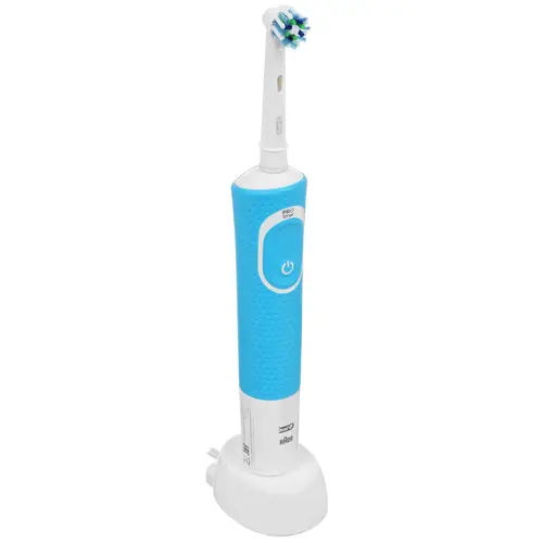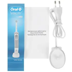 Электрическая зубная щетка Braun Oral-B Vitality D100.413.1 CrossAction обладает таймером, который оповещает пользователя о необходимости приступить к очистке другого участка. Автономная работа модели производится от аккумулятора. На восполнение его энергии до 100-процентной отметки затрачивается 16 ч.