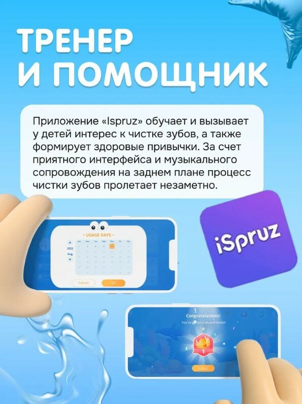 индикатор зарядки, таймер смены области чистки