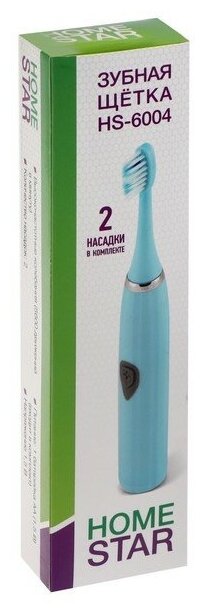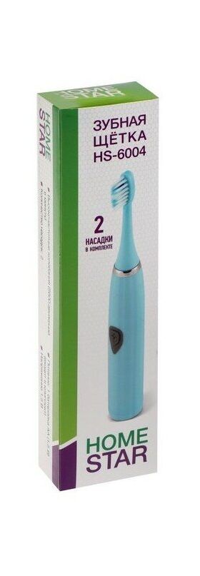 Электрическая зубная щетка Homestar обеспечивает более эффективную чистку по сравнению с обычной зубной щеткой. Она бережно обхватывает каждый зуб для более глубокой чистки, массируя при этом десна.Преимущества, Водонепроницаемый корпус, Эргономичный дизайн, Деликатный массаж десен.Комплектация, Зубная щетка 1 шт, Насадки 2 шт.Пульсаций в минуту, 5600,Количество режимов работы, 1,Водонепроницаемый корпус, да,Питание, 1 x AA (входит в комплект),Цвет, голубой.
