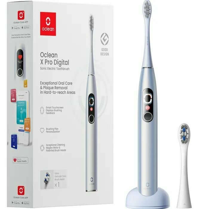 Зубная щетка - 1 шт; Подставка и зарядное устройство 2-в-1 - 1 шт; Насадка для контроля зубного налета - 1 шт; Насадка для деликатного ухода - 1 шт;, USB-кабель - 1 шт; Руководство пользователя.