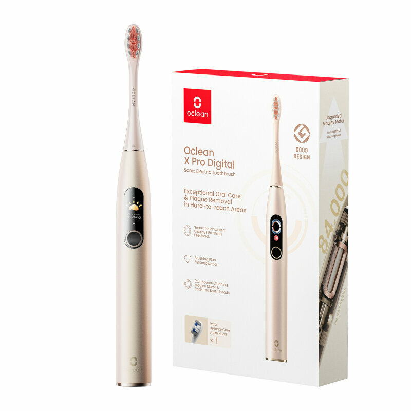 Зубная щетка - 1 шт; Подставка и зарядное устройство 2-в-1 - 1 шт; Насадка для контроля зубного налета - 1 шт; Насадка для деликатного ухода - 1 шт;, USB-кабель - 1 шт; Руководство пользователя.