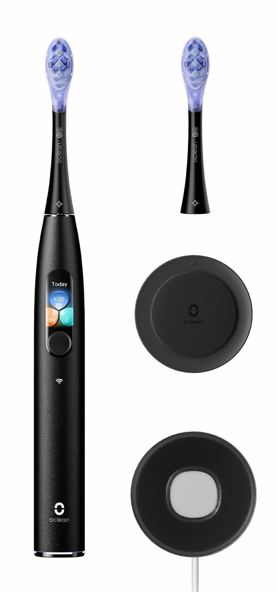 Электрическая зубная щетка Oclean X Ultra - это ваш маленький помощник в комфортном и эффективном уходе за зубами. Стильный дизайн выполнен в чёрном цвете, что отлично подойдет к различному интерьеру. Сенсорный дисплей в режиме реального времени покажет вам какие зоны вы пропустили во время чистки, поэтому пропустить даже небольшой участок не получится! Также, после каждой чистки зубов есть оценка проделанной работы от 0 до 100.
