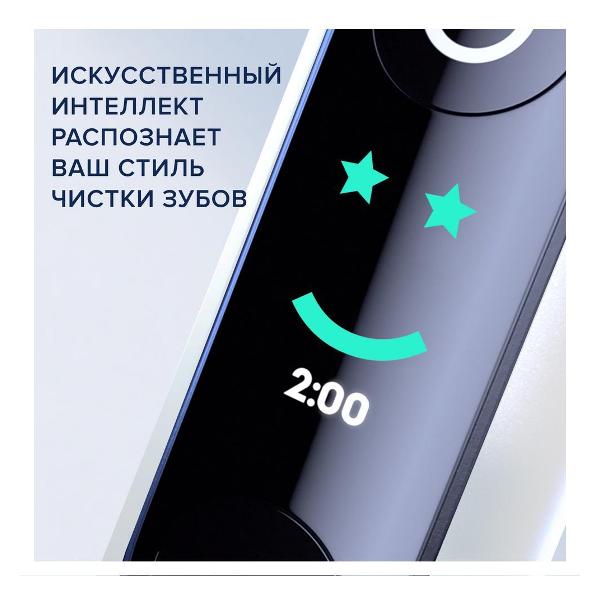Модель оборудована сенсором давления. В комплекте поставляются две насадки. Частота движения в минуту достигает 10500. Конструкция адаптирована для настольного размещения. Прибор обладает шестью режимами чистки. Возможна синхронизация со смартфоном.