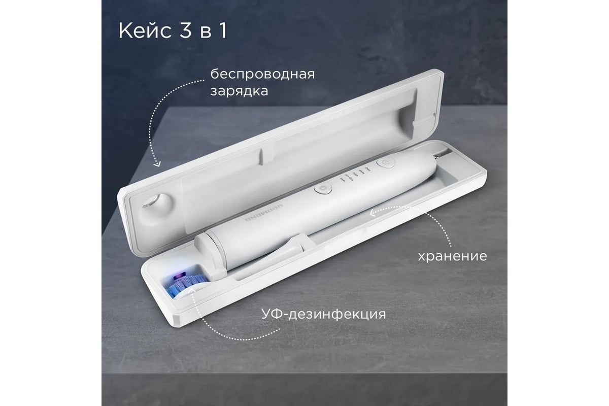 Зубная щетка Redmond TB4602, белый TB4602 белый черный предназначена для чистки зубов.