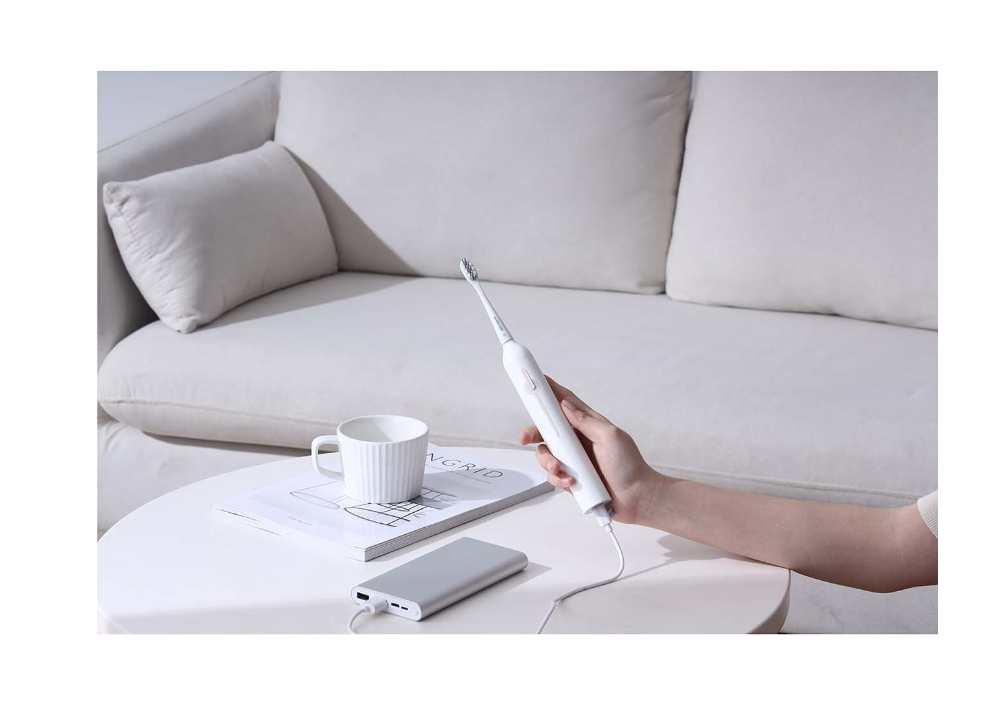 Аккумулятор емкостью 2500 мА*ч заряжается за 5 часов и обеспечивает до 180 дней работы. Подпитка производится от порта USB 5V. Пластиковый корпус выполнен по стандарту защиты IPX7 и не боится воды. Щетка весит 141 г. В комплекте поставляются две насадки.